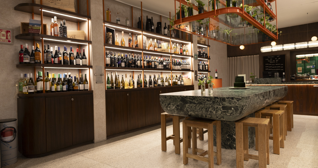 Diseño y ejecución de remodelación. Desarrollo de ingeniería eléctrica & HVAC para la climatización del sitio y control de temperatura. Espacio de venta a publico y lugar de catas grupales.