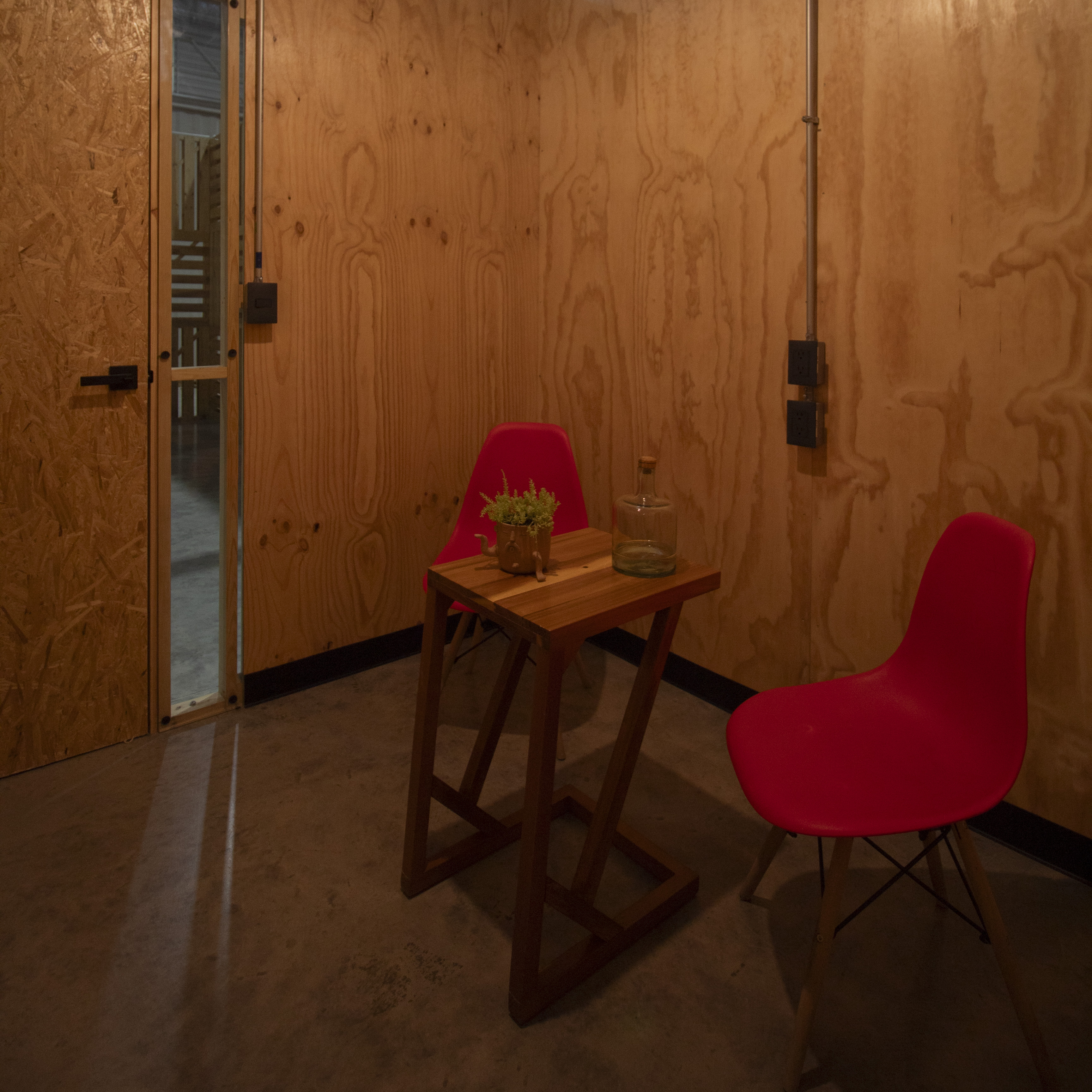 Se desarrolló el proyecto, diseño y ejecución de una planta envasadora de Mezcal en el centro de la ciudad de Oaxaca. Para el almacenaje, envasado y etiquetado del Mezcal. Se toma como inspiración de las plantas de Mezcal, la cultura y tradiciones del lugar. Pensando en un sistema de construcción eficaz de módulos de madera de triplay para su rápida ejecución.